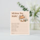 Er is een klein welpje onderweg. Wishes For Baby Kaart Herfst Baby shower Game met een schattige baby fox, pompoenen, pampa's en beige achtergrond. - Kate Eden Art
