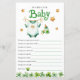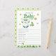 Vier je geluksbrenger met deze schattige "Wishes for Baby"-spelkaart. Met shamrocks, groene harten, sterren en een zoete groene baby-outfit, laat deze aandenken gasten oprechte hoop en dromen delen voor de nieuwe baby. Deze kaart is ideaal voor baby showers in het Iers of St. Patrick’s Day en is een geliefde herinnering voor aanstaande ouders.