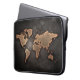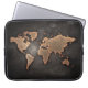 Wereldkaart leder, geografisch bruin laptop sleeve