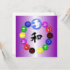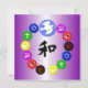 Op een beschaduwde paarse achtergrond, symboliserend tranquiliteit en sereniteit, hebben we een aantal symbolen van 's werelds grootste religies - hindoes, boeddhisme, Taoïsme, jodendom, christendom en islam - in een cirkel met de vredesduif en de olijftak over alles. We hebben ook het Chinese symbool voor Harmonie in het midden toegevoegd in een rijk, inkt zwart.