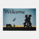 Paarden en cactus op het gebied met cowboy en cowgirl.