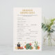 Westerse Baby Shower Game. Verander je baby shower in een speelse viering met het spel Nursery Rhyme, waarbij je op een naadloze manier plezier en stijl combineert. De achterkant van elke kaart heeft een bijpassend patroon dat het Western Boho Chic Baby Shower Collection echoot, zodat je evenement even coherent als vermakelijk is. Elk element is ontworpen om het thema aan te vullen en brengt de sfeer van de woestijn rechtstreeks naar je bijeenkomst. Laat het spel meer worden dan alleen een activiteit - maak het een onvergetelijk onderdeel van de ervaring van je gasten, gewikkeld in de unieke charme van je zorgvuldig samengestelde viering. Nodig je gasten uit om een stap te zetten in het verhaal dat je hebt gemaakt, waar elk detail spreekt van doordachte planning en effortless stijl.
