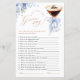 An elegant and playful bridal shower game featuring a chic espresso martini aesthetic with a soft blue bow and graceful floral details.