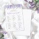 What’s In Your Purse? Bridal Shower Game. This playful activity invites guests to search through their purses and check off items from a fun point-based list, making it an easy and entertaining icebreaker for any bridal shower. The design features delicate lavender and wisteria flowers along the top, adding a soft, elegant touch, while the rest of the layout remains clean and simple.