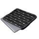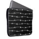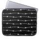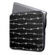 Zwarte laptophoes met een wit barbaarsdraadpatroon. U kunt de achtergrondkleur, de grootte en de hoek van het patroon wijzigen. Onze logo is in de hoek - beweeg of verwijder het als je wilt.