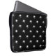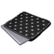 Zwarte laptophoes met een wit spinpatroon. U kunt de achtergrondkleur, de grootte en de hoek van het patroon wijzigen. Onze logo is in de hoek - beweeg of verwijder het als je wilt.