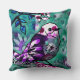 Whimsical Abstract Vogel Bloemen Blauwgroen Paarse Kussen