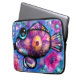Whimsical Abstracte Big-Eyed Fish Blauwgroen Roze Laptop Sleeve