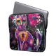 Whimsical Abstracte Bloemen Kitty Cat Zwart Roze Laptop Sleeve