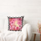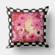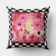 Whimsical Abstracte Bloemen Roze Rood Check Rand Kussen
