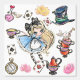 Step into a whimsical world with this enchanting Alice in Wonderland-inspired wallpaper. Featuring a charming illustration of Alice with her signature blue dress and blonde pigtails, surrounded by iconic elements like teacups, playing cards, and the Mad Hatter's hat, this design brings a touch of magic to any child's bedroom. The delicate watercolor style and subtle sparkle accents add a dreamy quality, perfect for creating an imaginative and playful space. This wallpaper is ideal for creating an immersive fairytale environment where little ones can let their imaginations run wild during tea parties or adventures down the rabbit hole.