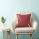 Dit baksteenrode kussen heeft een grillig bloemig en vlinderaccent.
