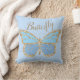 Girly en schattige grillige vlinder gooien kussen. Blauwe achtergrond. De vlinder is in twee tinten blauw met een gouden glitter-stijl omtrek. Daarboven staat het woord Butterfly in een typografisch script met het "vlieg" gedeelte van het woord dat omhoog gaat als een vlinder die vliegt.