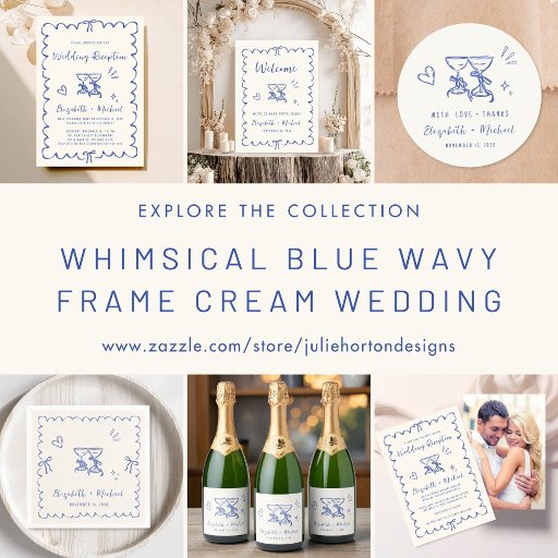Whimsical Blue Wavy Frame Cream Wedding ReceptionOntworpen door Julie Horton