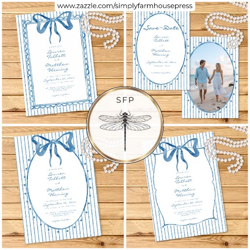 Whimsical Blue Watercolor Bow Stripe WeddingOntworpen door Kathe Santillo