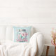 A pillow with a magical image featuring pastel colored butterflies in a jar.
