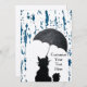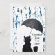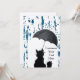 Een griezelige kat die de regen onder een paraplu uithaalt.