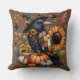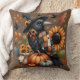 Whimsical Crow met pompoenen en zonnebloemen Kussen