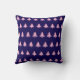 Een patroon van lichtroze kerstbomen verschijnt op dit donkerblauwe worpkussen.