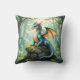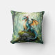 Dragon thema gooi kussen voor de kamer van de jongen. Een grillige draak, weergegeven in een gedetailleerde waterverf illustratiestijl, zit bovenop een met mos bedekte oude stenen ruïne. Zonlicht filtert door het dichte bladerdak van het bos en verlicht de stofmijt die in de lucht danst. De schubben van de draak glinsteren met iriserende tinten en zijn ogen houden een zachte, wetende, leuke fantasiekunst vast. Schattige voor de kamer van een jongen.