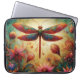 Whimsical Dragonfly Floral Abstracte Kunst Blauwgr Laptop Sleeve