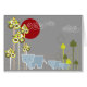 Whimsical Elephant Family in Forest & Red Sun