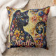 Whimsical Floral Black Cat Kat gepersonaliseerd Kussen