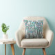 Whimsical floral pillow, kleuren in tinten blauw en groen met een hint van stoffig roos. Kussens voor iedereen die iets anders wil.