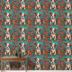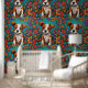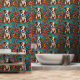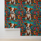 Whimsical Folk Art Puppy Hond en Bloemen Behang