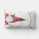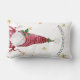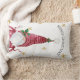 "Whimsical Gnome Holly Merry KerstGold Stars Lumbar Pillow." Fun, verticaal ontwerp om op uw bank uit te vallen. Licht- en luchtwitte achtergrond kunnen desgewenst worden gewijzigd. Schattige kerstkoepel in rood met een snoepriet gestreepte kerstman met een heilige en bessensorische bril, samen met de tekst: "Vrolijk kerstfeest!" Dit kunstwerk is in waterverf geschilderd door een internationaal erkende kunstenaar, Audrey Jeanne Roberts.