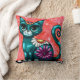 Whimsical Kitty Cat Zittend op vloerkleed Bloemen Kussen