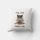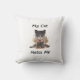 Dit kussen toont een donkere grappige illustratie van een boze kat, spelend op het klassieke stereotype dat katten afstandelijk, koud of zelfs openlijk vijandig zijn tegenover hun eigenaren. Het vangt de humor van katten als kleine tirannen die het huis regeren en mensen alleen op hun eigen voorwaarden tolereren.