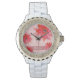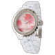 Whimsical Red Flowers Swirly laat roze horloge achter. Pas deze elegante Horloge aan met jouw naam.