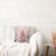 Whimsical Roze Vrolijke Kerstboom Sneeuwval Kussen