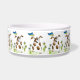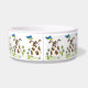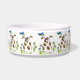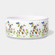 Dit is een origineel gemengd mediaschilderij van een gespikkelde whimsical-hond en een blauwvogel met een bot.