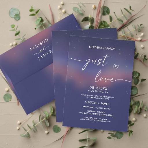 wedding receptioncasual receptionnothing fancy just loveelopement invitationwe elopedelopement announcementnight elopementpurple wedding invitationluxuryelegant