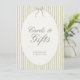 Voeg een charmant en gecoördineerd detail toe aan uw cadeautafel met dit grillige streep groene trouwkaarten en cadeaubonnen teken. Met zachte, handgetekende waterverf strepen in een fris groen palet en moderne, minimalistische typografie, is dit teken de perfecte manier om gasten te leiden waar ze hun kaarten en geschenken kunnen achterlaten, terwijl het een aanvulling vormt op uw algehele huwelijksesthetiek. Gedrukt op hoogwaardig karton of verkrijgbaar als poster- of schuimbord, is dit bord volledig aanpasbaar, zodat u het bericht, de lettertypen of de kleuren kunt aanpassen aan uw exacte stijl. Het grillige streepontwerp geeft een luchtig en gepolijst gevoel, waardoor het ideaal is voor tuin-, lente-, rustieke of casual elegante bruiloften. Laat het zien in een lijst, op een ezel, of leunde op uw cadeautafel om het uiterlijk van uw ontvangstruimte te voltooien terwijl u dingen voor uw gasten organiseert.