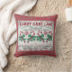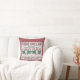 Whimsical vakantie worp kussen beschikt over een stijl "Candy Cane Lane" teken compleet met boog gewikkeld snoep stokken, en een feestelijke rode geplakte achtergrond.