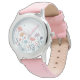 Voeg charme toe aan de pols van uw kind met dit grillige waterverf bloemige kinder horloge. Zachte pastelbloemen in blozend roze, perzik, lavendel en blauw bloeien langs slanke donkere stengels op een witte achtergrond, geaccentueerd met kleine harten, sterren en stippen. Een speels, vrolijk en op natuur geïnspireerd ontwerp dat ideaal is voor alledaagse draag of als een doordacht cadeau voor jonge bloemliefhebbers.