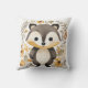 Dit afbeelding toont een charmant vierkant decoratief kussen, met een schattige cartoon-stijl das met een vriendelijke en uitnodigende expressie. De das wordt geïllustreerd met een rijke mix van grijs, wit en zwart, zijn grote ogen en zoete glimlach straalt warmte en vriendelijkheid uit. Het is geplaatst tegen een achtergrond van zachte neutrale tinten, versierd met een delicaat patroon van herfstbladeren, eikels en subtiele bloemige accenten in tinten van beige, bruin en zacht geel. Het kussenontwerp vangt de essentie van boswandeling, waardoor het een ideaal accessoire is voor een kinderkamer of elke ruimte die een vleugje speels comfort nodig heeft.