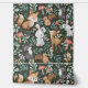 Schattige bosdieren zoals vossen, wasberen, konijnen, eekhoorns en een speels hert omringd door zacht groen en paddenstoelen