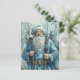 Beautiful watercolor-style blue Santa Claus Christmas Scrapbook Paper - Junk Journal Craft Page. The back has a damask pattern.