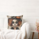 Whimsy in Mourning: The Pumpkin-Eyed Reverie Sierkussen Een porseleinen figuur, gevangen tussen onschuld en griezeligheid, staart dromerig uit een droomlandschap. Haar schedelachtige gezicht en brede, spookachtige ogen roepen een tedere melancholie op, omlijst door vurige krullen en een klein pet met pompoen dat fluistert van herfstonheil. Met haar kin in handschoen zweeft ze tegen een achtergrond van verouderde krantenknipsels - fragmenten van vergeten verhalen en spectrale fluisteringen. Het palet is warm en nostalgisch, een zachte botsing van gotische charme en speels verdriet, waardoor kijkers worden uitgenodigd in een wereld waar geheugen en maskerade verstrengelen.