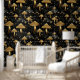 Whimsy Zwart Goud Paddenstoelen Patroon Peel en St Behang