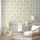 Our design features delicate watercolor floral patterns in lime green and pale yellow, blooming gently against a crisp white background. This graceful pattern adds a touch of freshness and minimalist chic without overwhelming the wall.