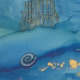 Levendige blauwe golven met Whitby Abbey en de Whalebones en natuurlijk de ammoniet.