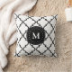White Black Quatrefoil Pattern Monogramed Pillow Kussen