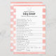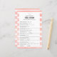 Geniet van spelen Wat was mama aan het verdienen? baby shower spel. Witte bunny verschijnt net boven honorees naam op dit licht, meisje roze en witte streep, waterverf achtergrond.
