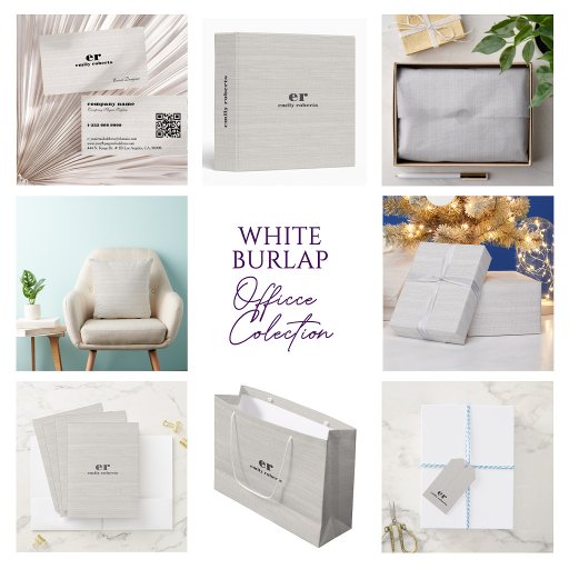 White Burlap Linen QR Code Business Card Vierkante Visitekaartje