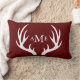 White Deer Antlers Monogram Rustic Red Burlap Kussen